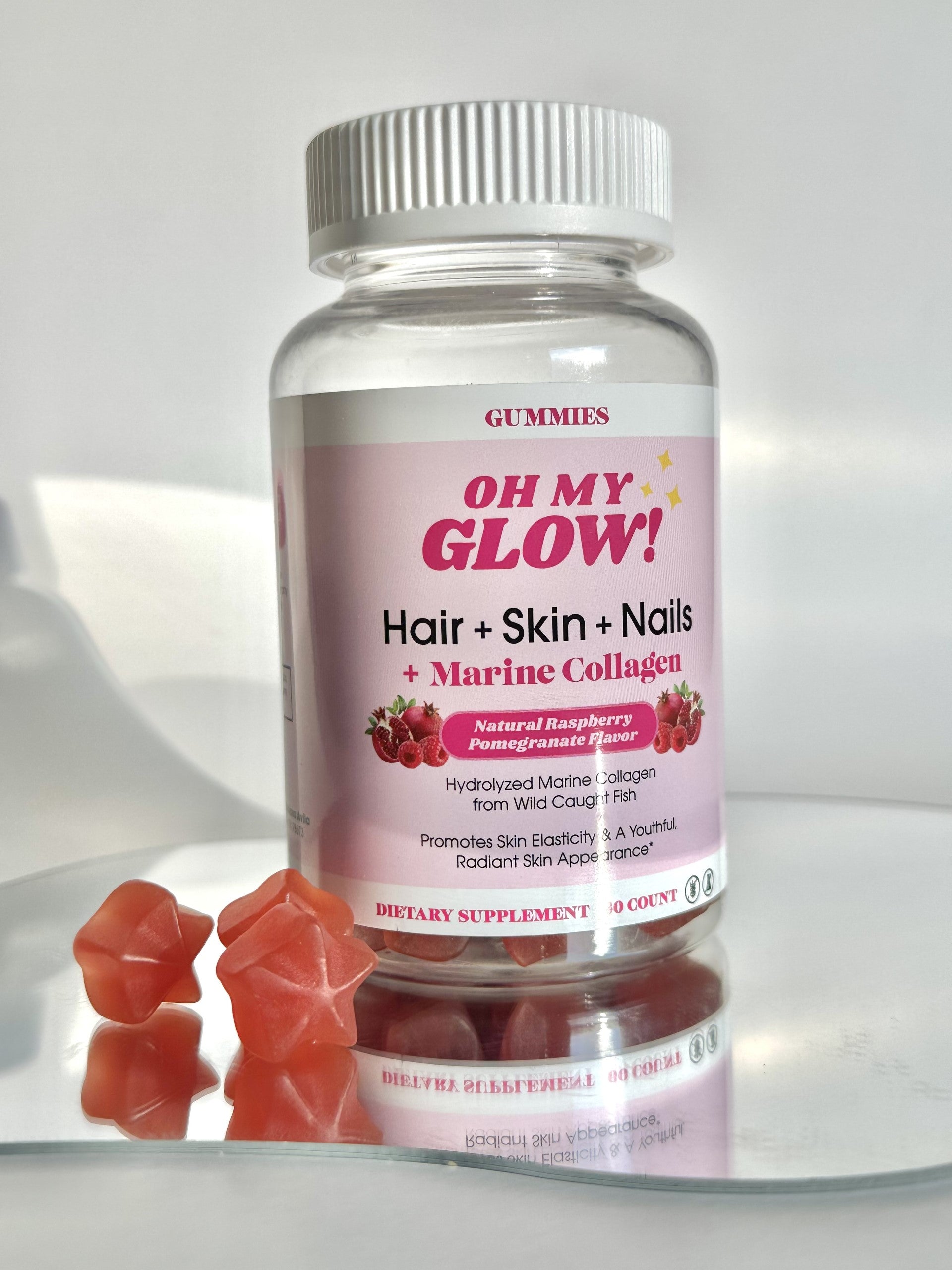 Support your daily wellness routine with Oh My Glow’s Marine Collagen Gummies. These dietary supplements are designed to complement your beauty and health care habits.