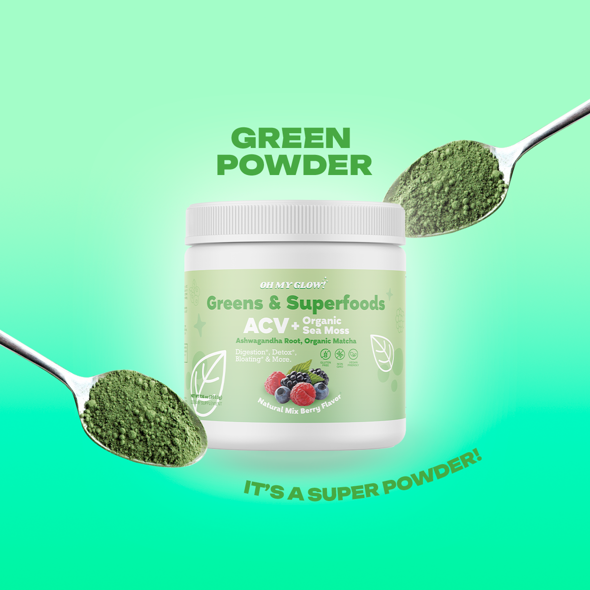 Oh My Glow! Super Greens Powder – Botanical Blend with ACV, Sea Moss & Matcha